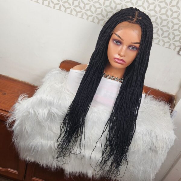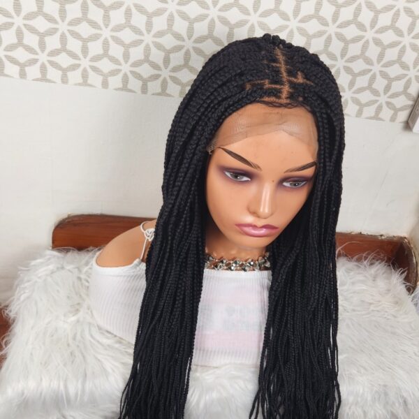 This is one of our newly braided box braid. Frontal wig, big and full braid, black, 26inches in length. Neatly made. 100% handmade and durable. This wig is available to order