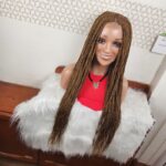 This amazing and natural looking wig is everything one can ask for in a wig. Its 100% handmade braided wig. This with has a short cornrow at the front and box braids at the back of the wig. Its newly braided and ready to be shipped. This wig is light brown (colour 30) and its 34inches in length.