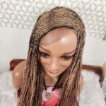 Santana 13 x 4 full frontal wig with curls at the tip. Beautiful handmade box braid for all women. This wig natural looking and full. Length is 34 inches long and colour is ombre as seen in pictures.